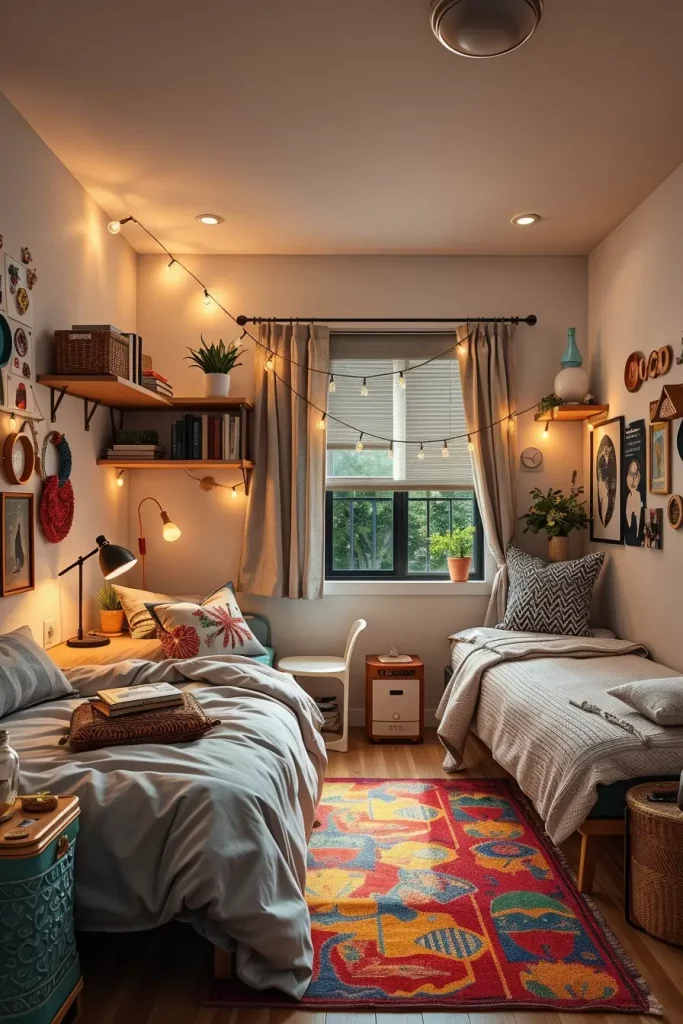I would always suggest built-in storage beds, floating shelves, and foldable desks in such spaces to ensure that the floor space is not occupied. A reading nook can be created with a small upholstered chair close to the window, and the mirrors can be used to make the room look bigger. Walls should be painted in neutral colors and textiles like knitted throws or oversized pillows can be used to make the space welcoming. Lighting is also important and therefore wall-mounted sconces are better than bedside lamps that are huge.