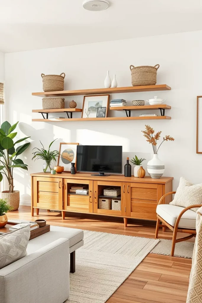 Smart storage Smart living room can be the most gorgeous neutral, but nevertheless, it still requires some storage, which can be found both functional and visually unified. I employ the help of neutral toned storage furniture, such as low credenzas, floating shelves and woven baskets that would prevent the clutter without breaking up the aesthetic flow.