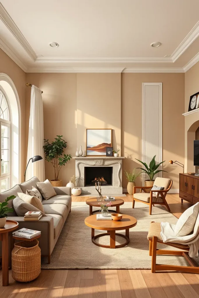 Matte or eggshell paint in soft almond, oatmeal or warm taupe are my choices on walls. Match them with sharp white baseboards and trim. Such a modest decision makes art and furniture visible without overshadowing each other. Beige also harmonizes beautifully with other neutral decor, whether you’re using gray, cream, or earthy accents.
