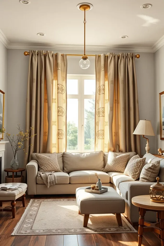 Elegant Curtains In Warm Grays And Tans