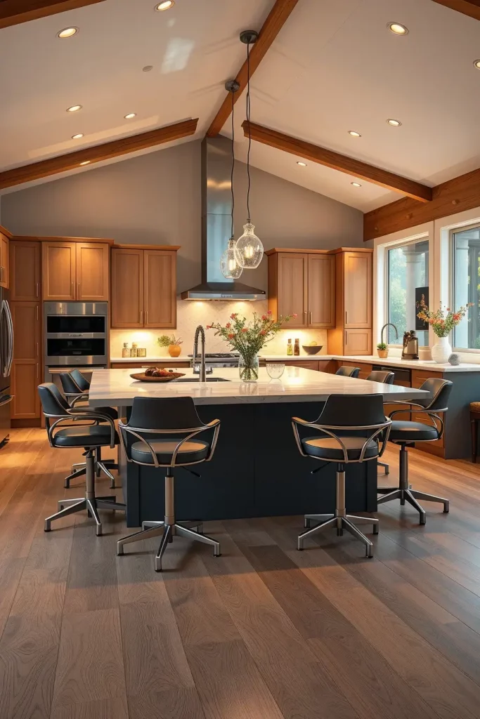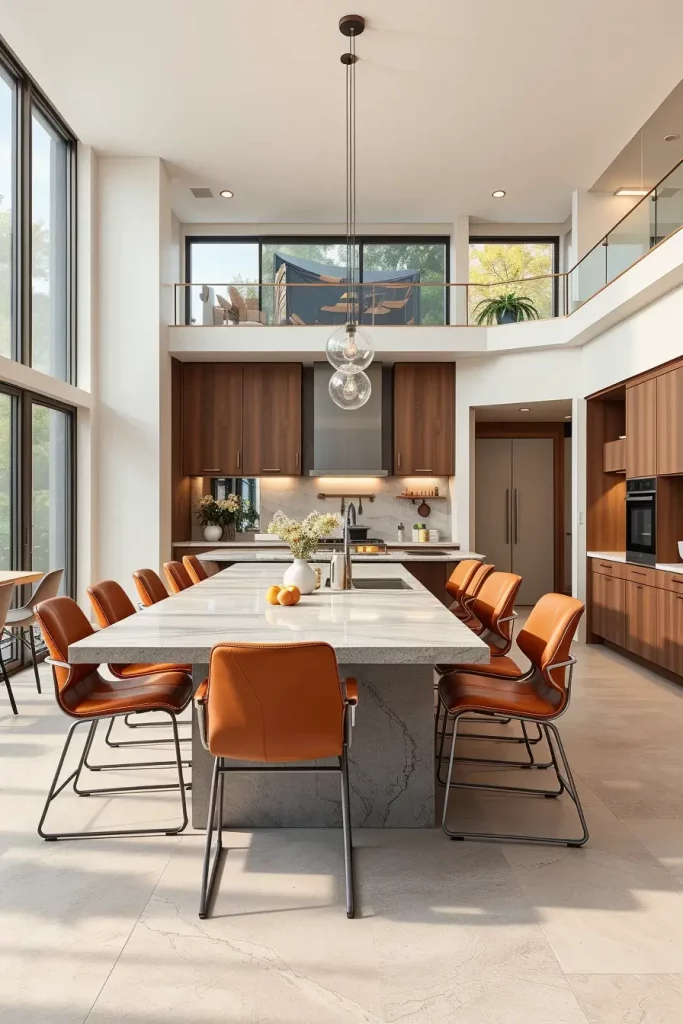 The first thing I would include in this is the adjustable comfort feature detailing, i.e. subtle cushioning or flexible back support, particularly where the family will be using the island to make their main dining room. This makes sure that the avant-garde design is not at the expense of comfort in the long run.