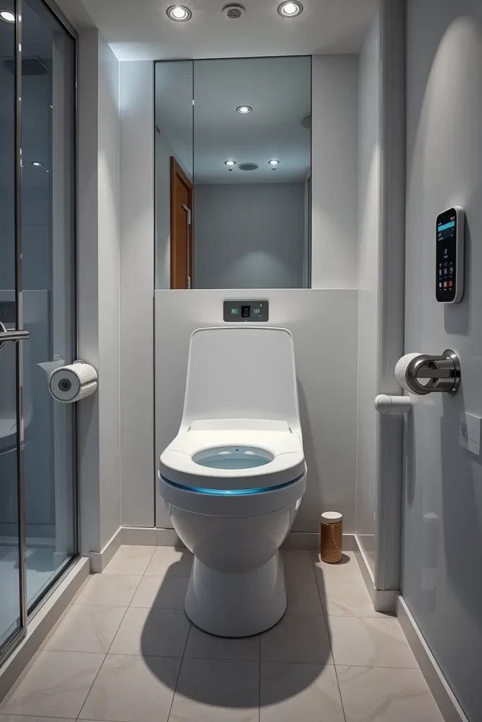 To have more effect, I would recommend setting up such toilets with hidden plumbing and similar high technological amenities such as touchless fixtures or lighted mirrors to produce the completely integrated smart space.