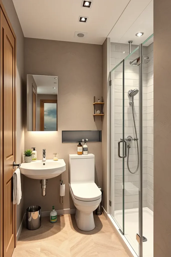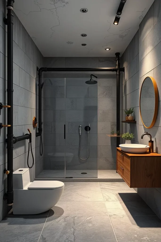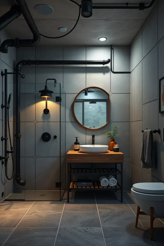 In order to attain this appearance, I normally choose exposed copper or matt black pipe fittings on faucets and showerheads. Existence of in-concrete countertops or floating vanities with the texture appearance of wood grain contrasts and brings the cooling effects, whereas metal-framed mirrors can provide the flare of retro. I never leave out a frameless industrial-style glass shower enclosure that makes a shower look open but still does not lack style.