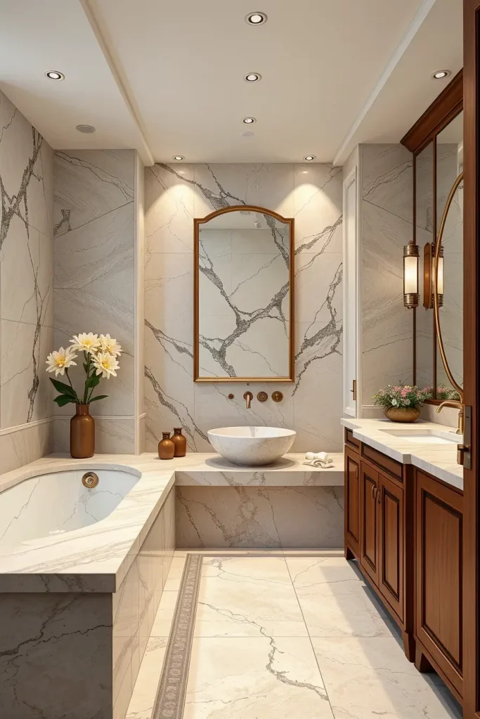 My favorite applications have been full height marble vanities that are behind the panics, big countertop, and floor work. I will frequently combine a hard marble with austere cabinetry and matte metal fittings to enable the marble to shine through. They also have museum-like design in form of freestanding tubs before veined walls. I normally prefer to use such materials as Calacatta or Nero Marquina due to their aesthetic effect and durability.