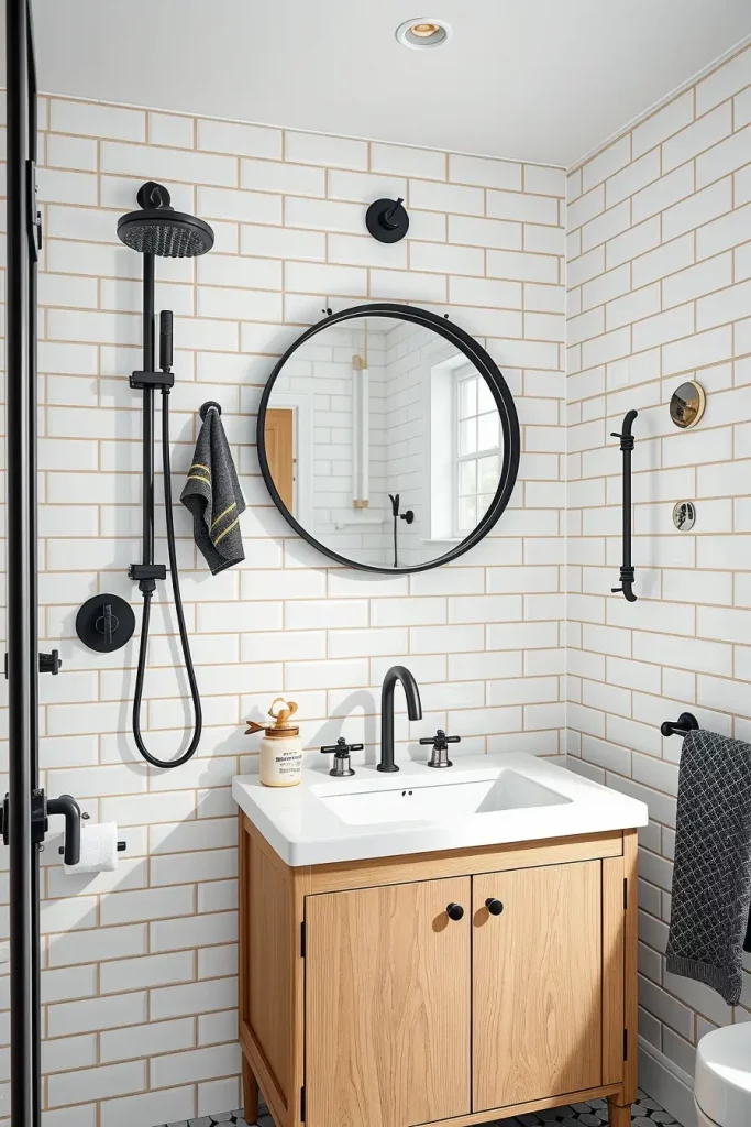 Nevertheless, I tend to recommend a mix of black and lighter materials or smooth finishes, such as wooden vanities or warm lights, where the space will not look too contrasting. A good tip is to mix in brushed brass for accents if you’re aiming for a softer, more layered look.