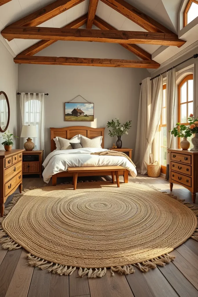 A natural fiber rug to pull the room together is indispensable on a modern farmhouse bedroom. These carpets are handy, environmental and extremely touchable. I use them frequently to outline the bed space particularly in the rooms having hardwood or plank floors. They do not crowd the total image and contribute to its warmth and softness.