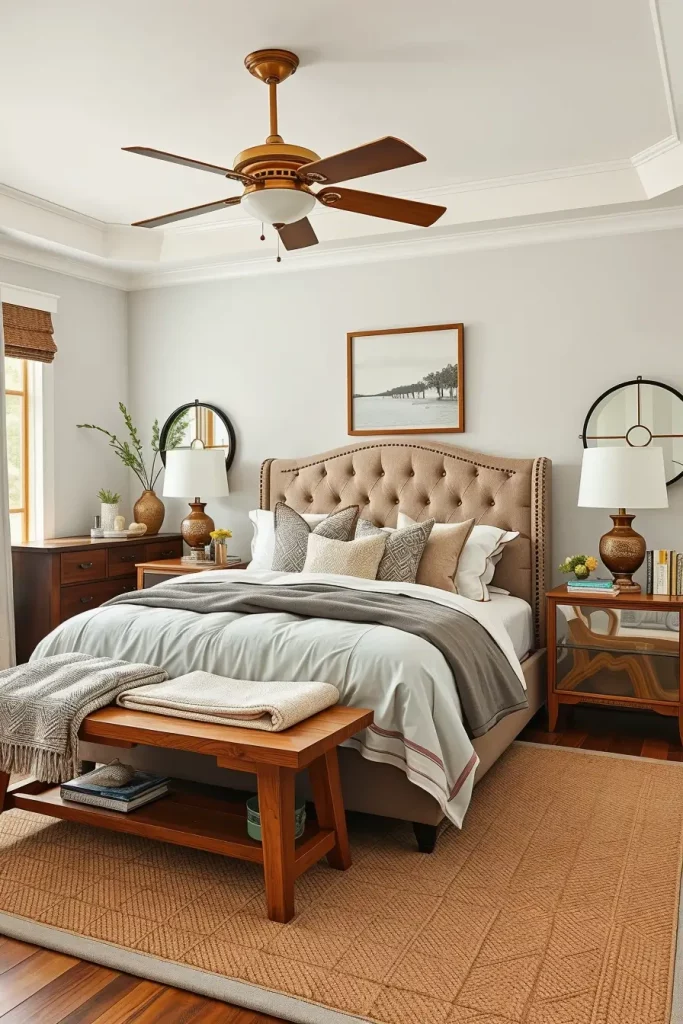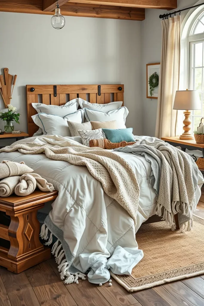 Layering is a technique that comes to my mind quite early once I begin to decorate a modern farmhouse bedroom to create a warm and textured space. A room is becoming more welcoming immediately when throws and quilts, especially those of a muted color or featuring a subtle pattern are used. A textured bed arrangement is a practical and practical element in a room besides being a visual point of reference.