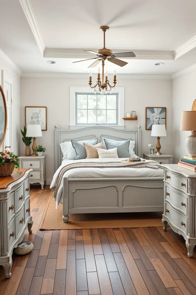 I gravitate to chippy white nightstands and gray-washed dressers, which are all fairly neutral and modest. Another thing that I really enjoy is dry-brushing techniques or sanding painted edges to expose the wood grain underneath. These are articles that do not appear new even after they have been bought.