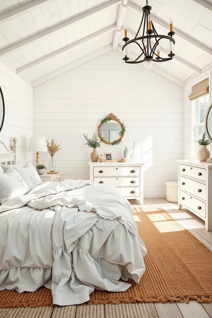 White Farmhouse Bedrooms With Soft Accents