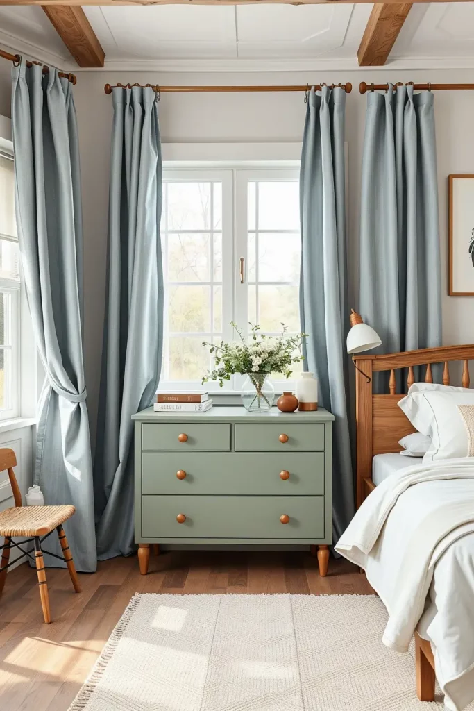 In my own case, I like that farmhouse curtains are soft which is generally needed to offset the heavier items in the room such as iron bed frames or any heavy wood pieces. Better homes and Gardens frequently point out that window treatments that are made of light and breathable materials can make an area feel open and airy, which is critical in the small bedrooms.