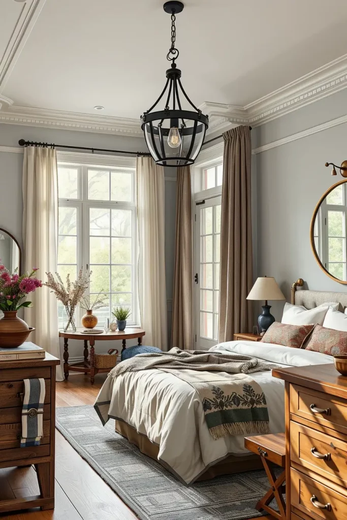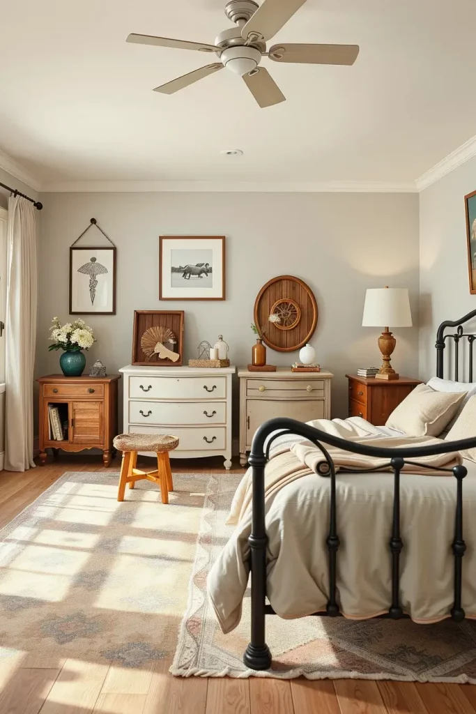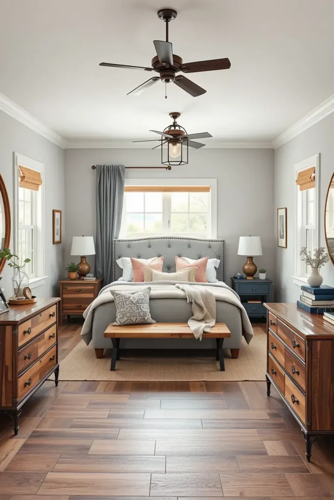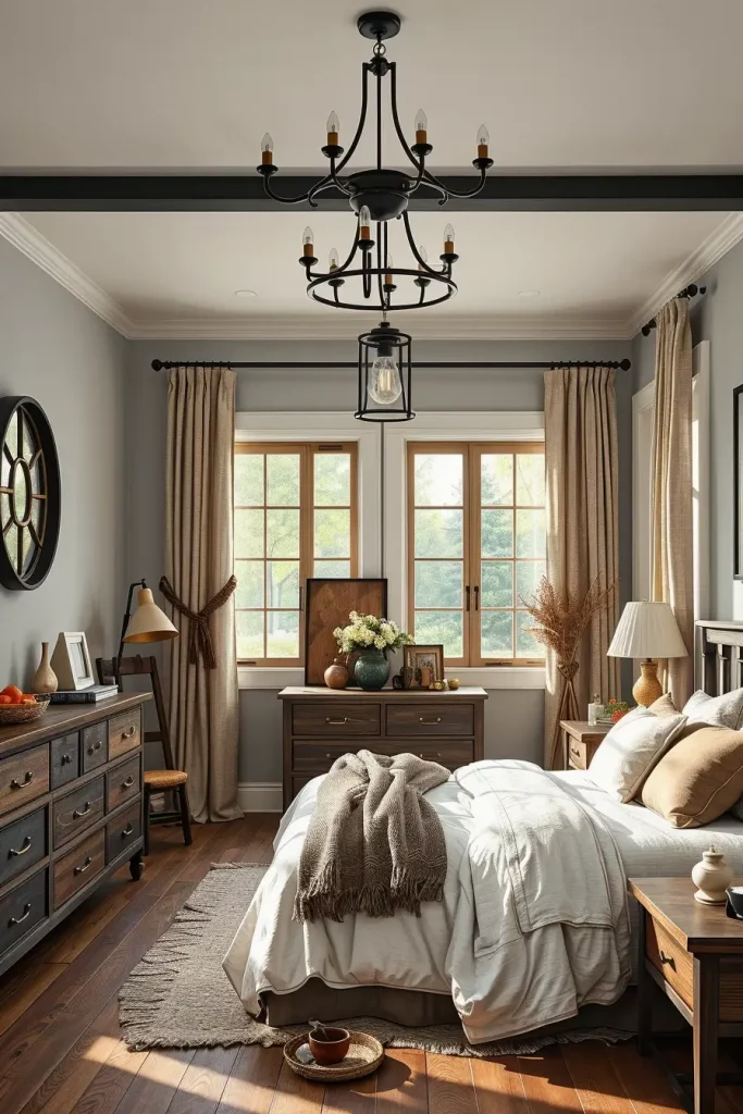 I like that modern farmhouse bedroom design is the chance to have layers of character by using antique and vintage pieces. This style encourages you to venture into flea stadiums and estate sales to find that just right chippy-painted chair or weathered trunk. The beauty of such an approach is that the rooms do not resemble any others; every single piece has a story to tell, and it gives space the needed warmth and depth that simply cannot be achieved by mass-produced furniture. It’s also incredibly practical because you’re giving older items a second life in a modern setting.