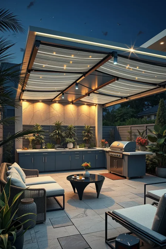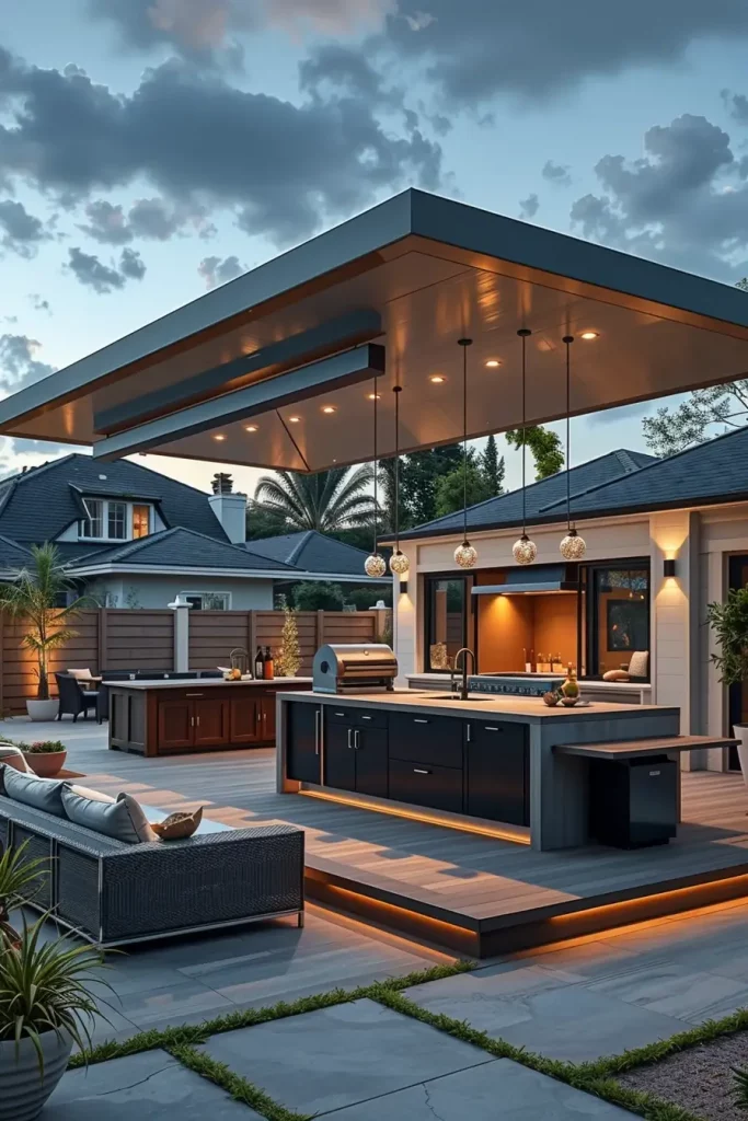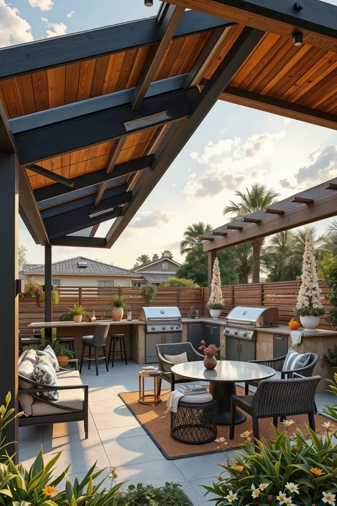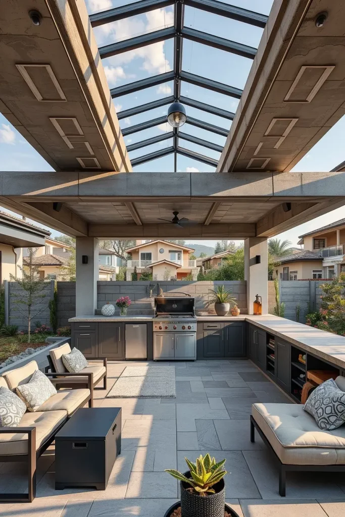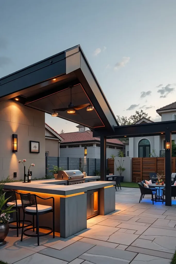 A futuristic outdoor bbq area with roof 2026 embraces technology as part of the design. I approach these spaces by integrating smart systems into the roof and structure, enhancing convenience and control.