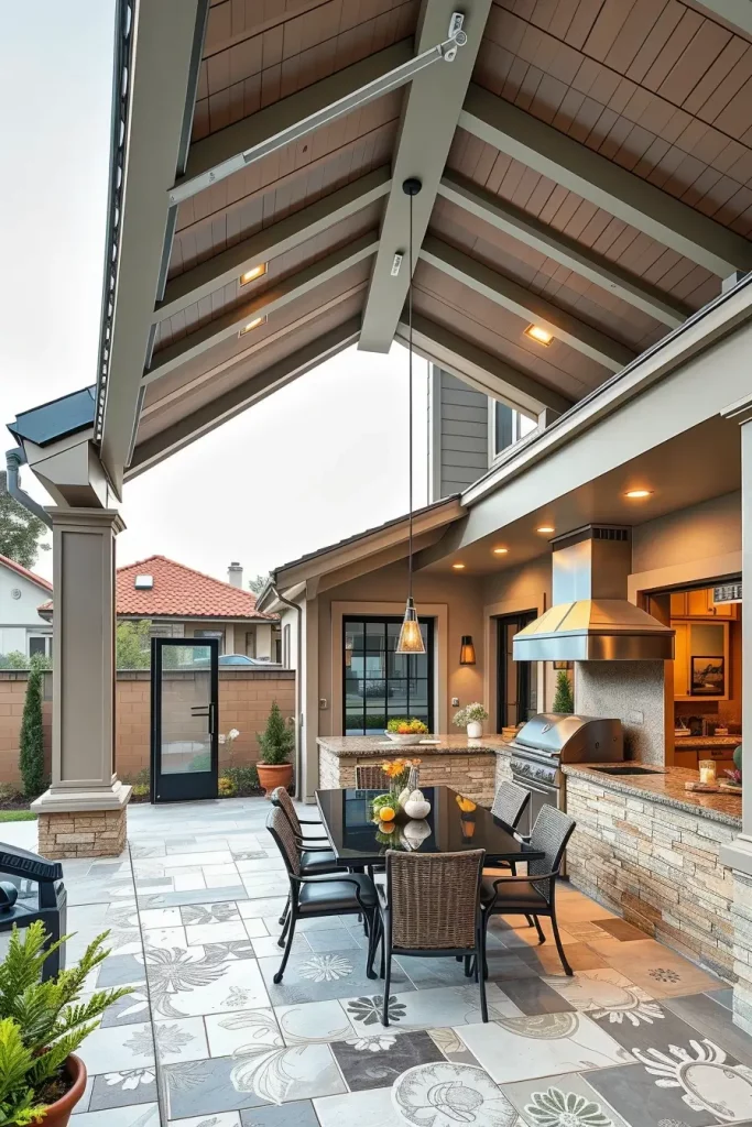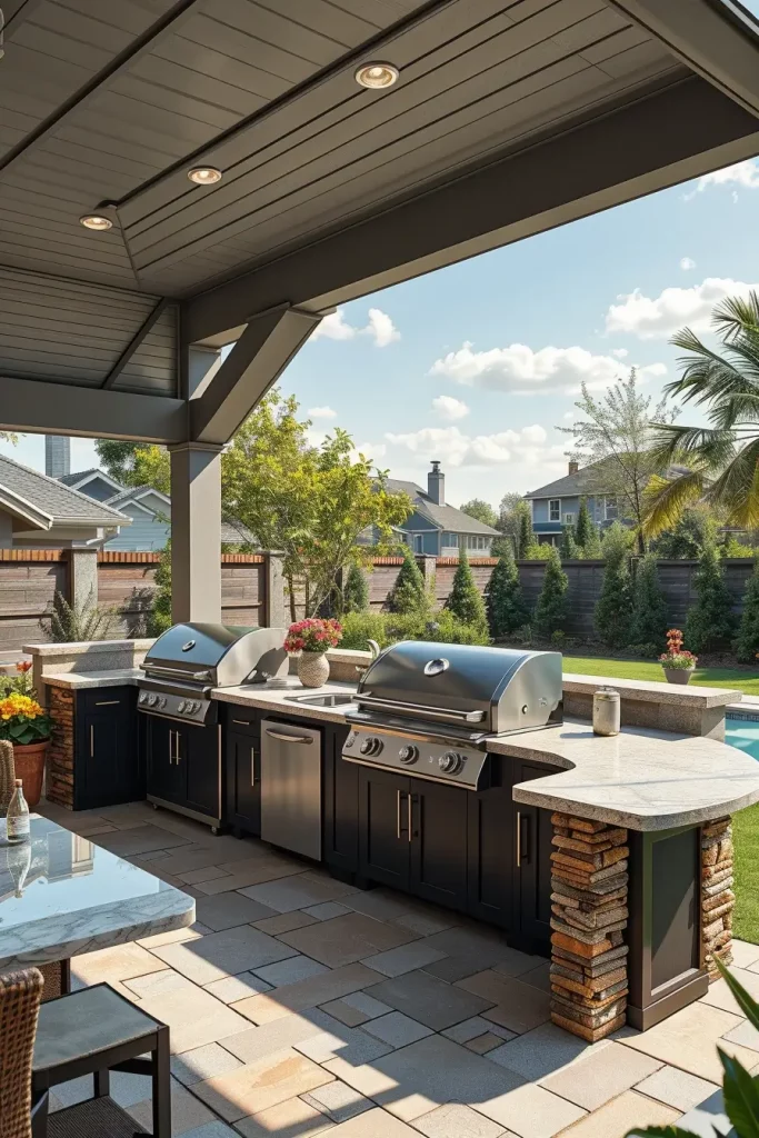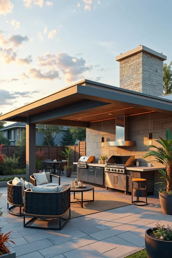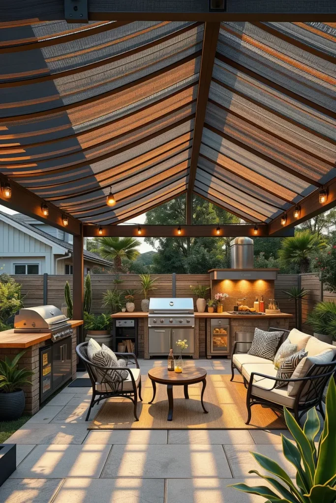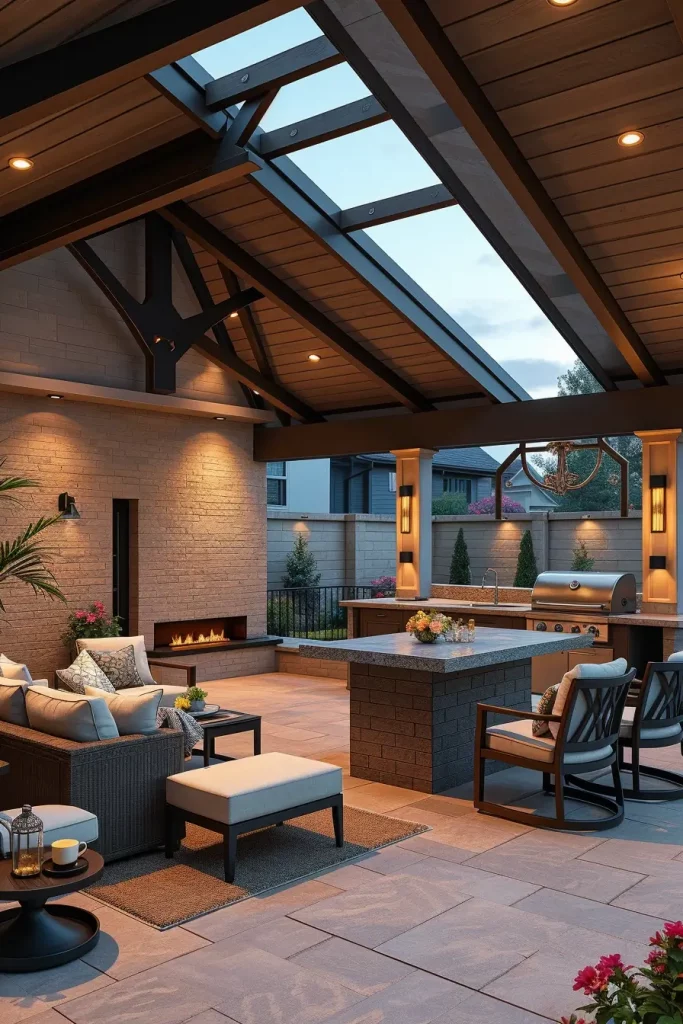 A futuristic outdoor bbq area with roof 2026 embraces technology as part of the design. I approach these spaces by integrating smart systems into the roof and structure, enhancing convenience and control.
