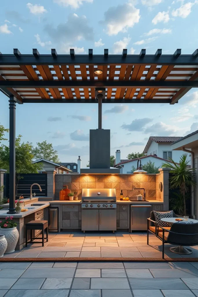 Modern Pergola Roof BBQ Areas With Integrated Lighting