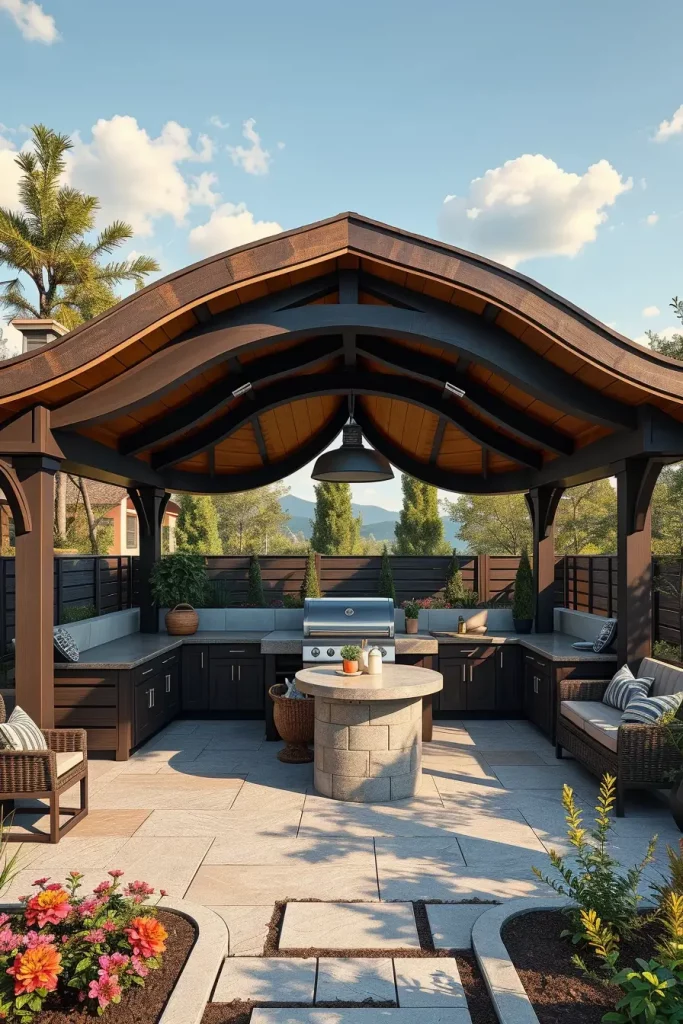 Unique Outdoor BBQ Area With Curved Roof Architecture