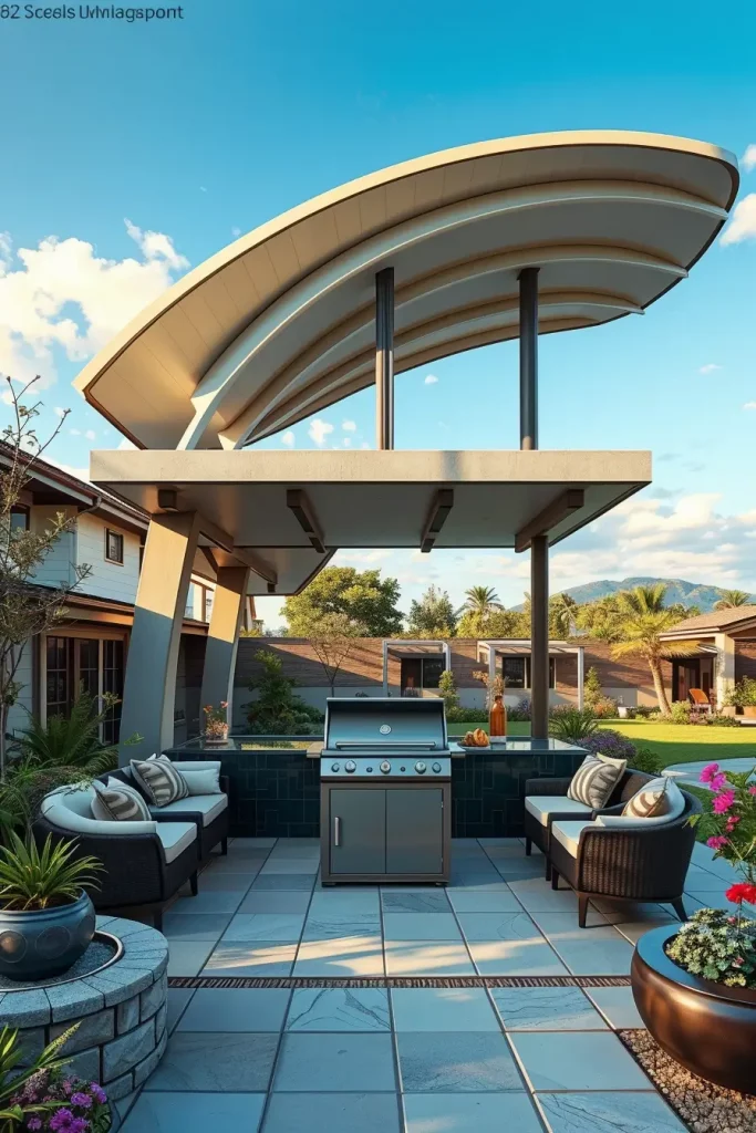 In my professional opinion, many leading US architects stress that outdoor structures should feel intentional and expressive, not decorative. I find that sculptural roofs achieve this perfectly, offering shade and protection while acting as an architectural centerpiece.