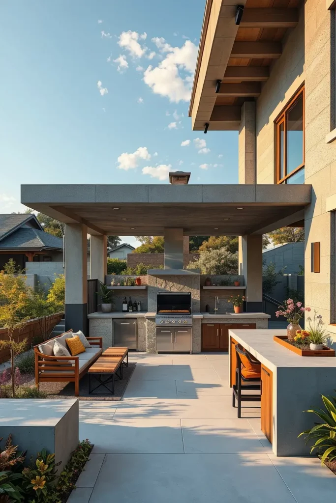 High-End Outdoor BBQ Area With Concrete Roof Design