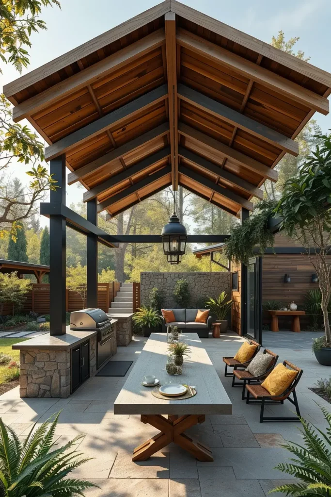 Outdoor BBQ Area With Bold Roof Geometry