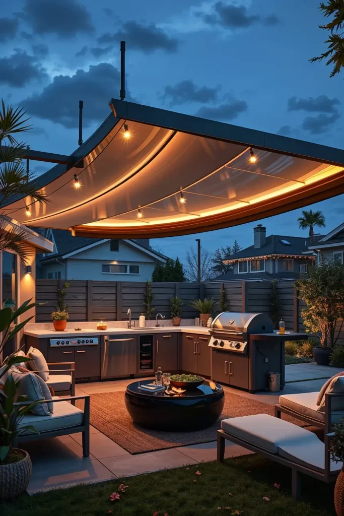 Outdoor BBQ Area With Retractable Roof Systems For Flexibility