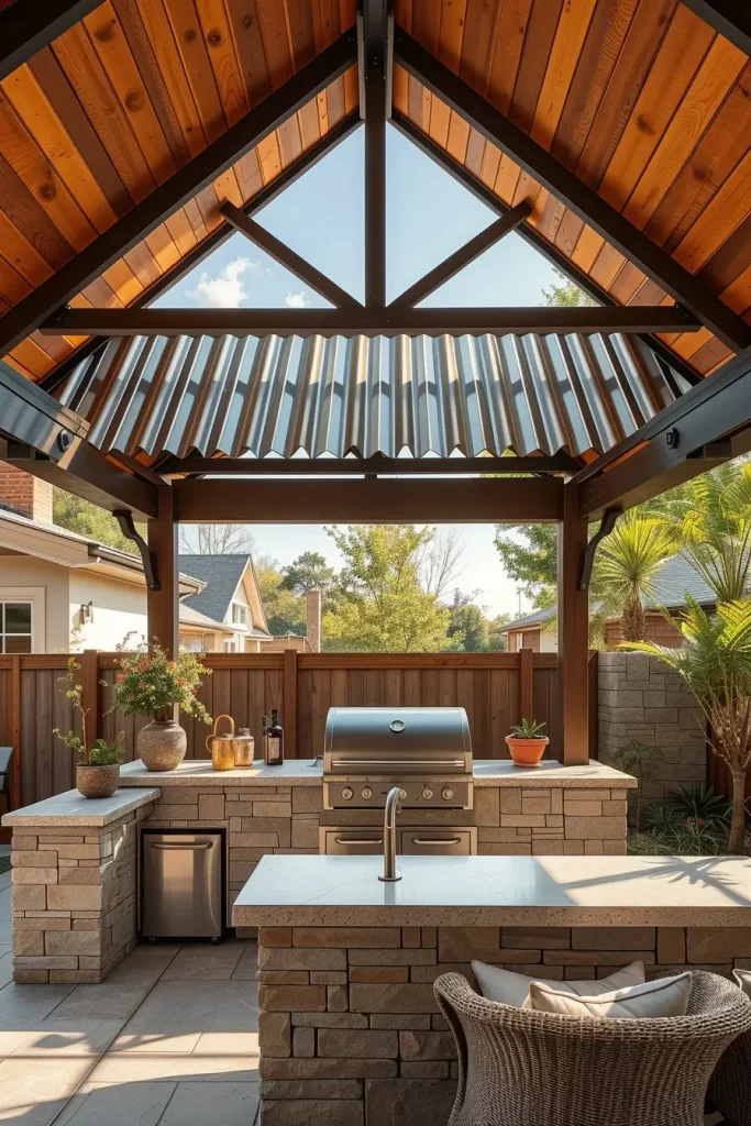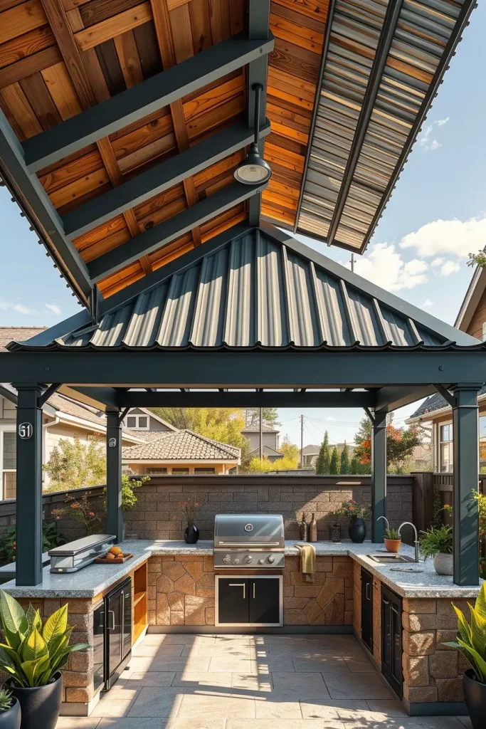 Contemporary Metal Roof BBQ Areas With Industrial Elegance