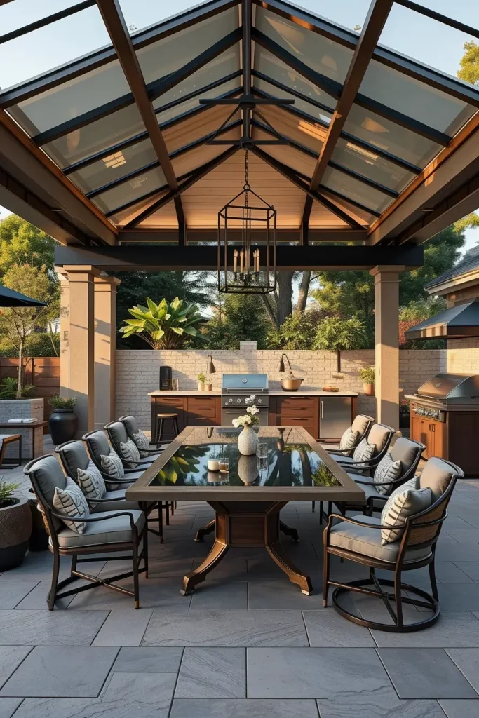 Luxury Outdoor BBQ Area With Glass Roof For Year-Round Use