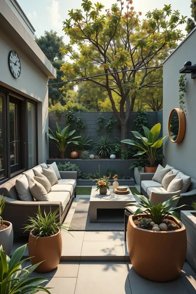 Modern layouts for small garden decor in 2026 are defined by clarity and flow. I design these gardens with simple geometric zoning that separates lounging, dining, and planting areas without using heavy visual dividers. This approach makes the garden feel organized while maintaining openness and flexibility.