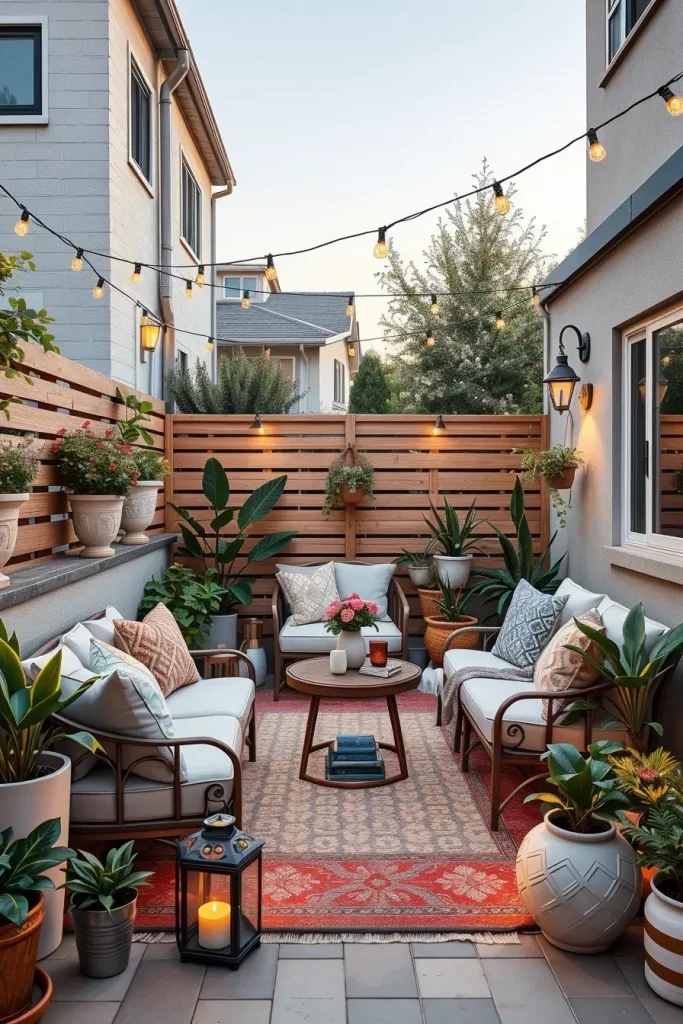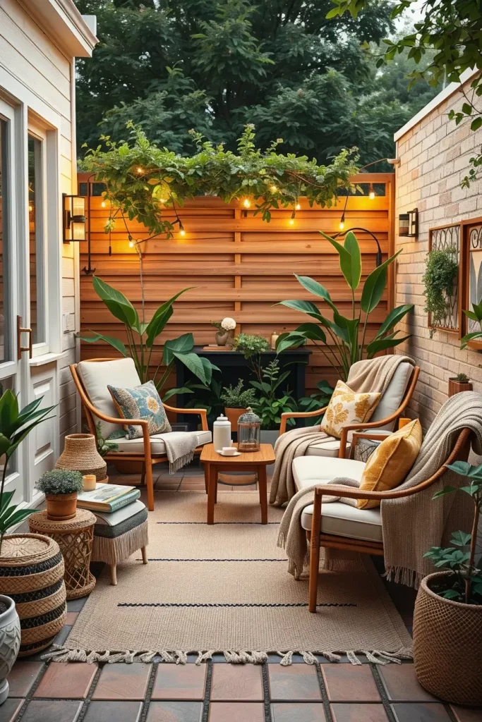 From personal experience, outdoor rugs significantly improve comfort and usability. Designers writing for House Beautiful often highlight how rugs soften hard surfaces outdoors, and I fully support this view. A rug encourages longer use of the space and adds warmth that small gardens often lack.