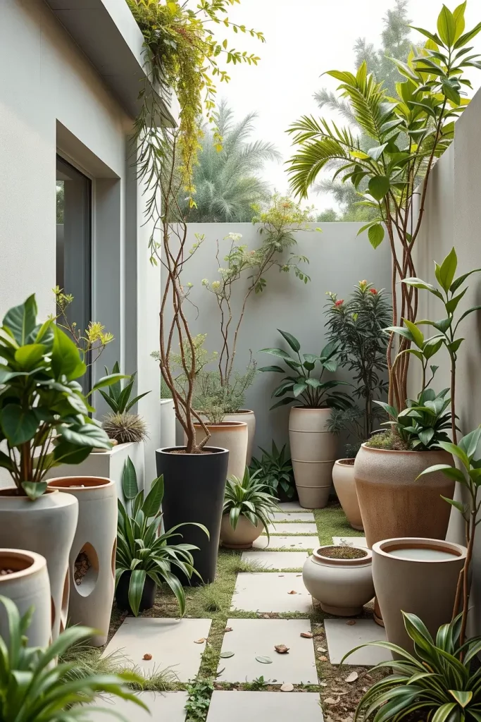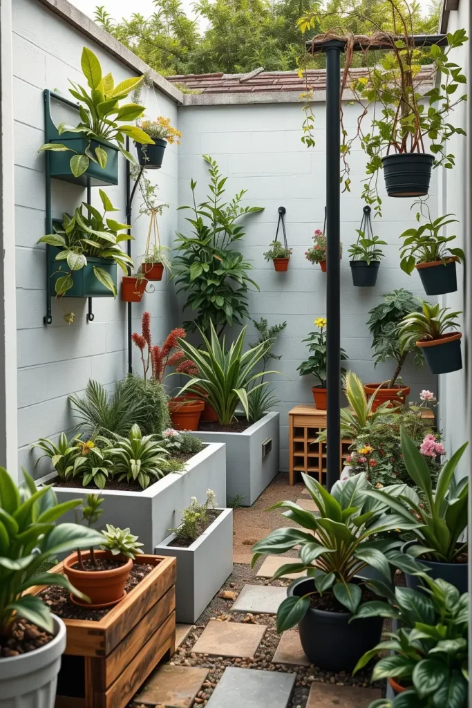 I recommend mixing ground-level plants with wall-mounted planters, hanging pots, and raised beds. Compact shrubs, ornamental grasses, and climbing plants allow for variation in height and texture without consuming excessive floor space.