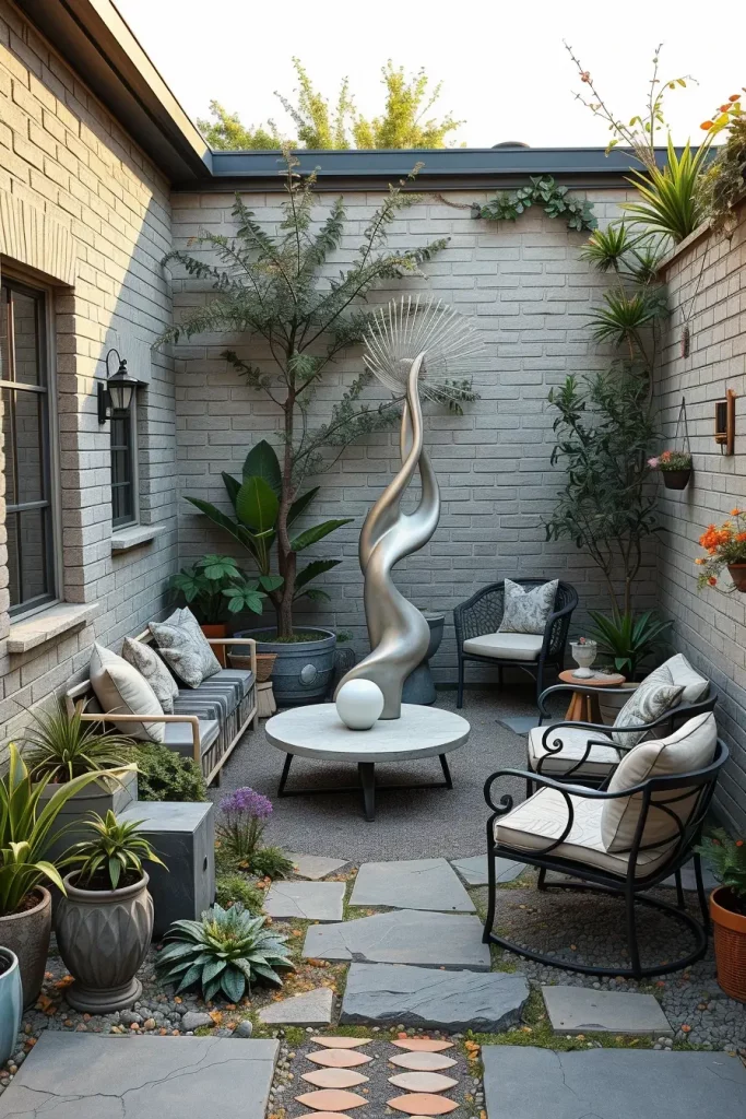 Artistic accents give small gardens personality and a sense of individuality. I approach garden art as a focal point rather than decoration spread throughout the space. In 2026, artistic garden decor favors sculptural forms and subtle statement pieces that complement natural surroundings.