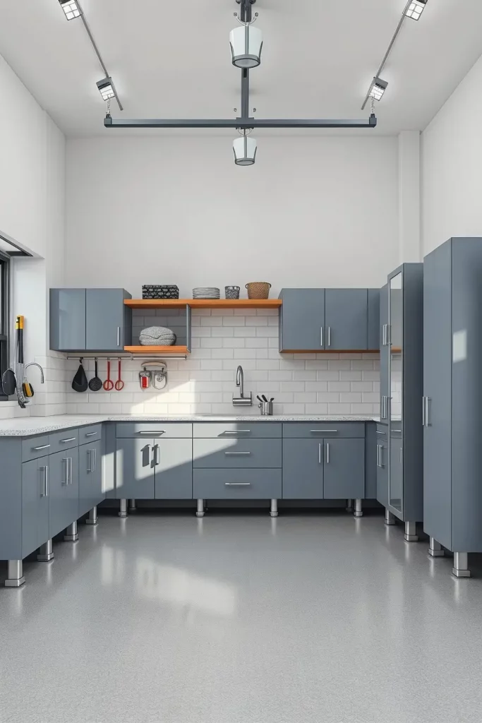 Seek for matte black, silver, or navy powder-coated steel or composite cabinetry. Features like soft-close drawers, locking doors, and adjustable shelving are essential. Besides storing tools and supplies, these units elevate the overall aesthetic of the garage, transforming it into a professional workspace. For additional functionality, a stainless-steel countertop or butcher block can be included.
