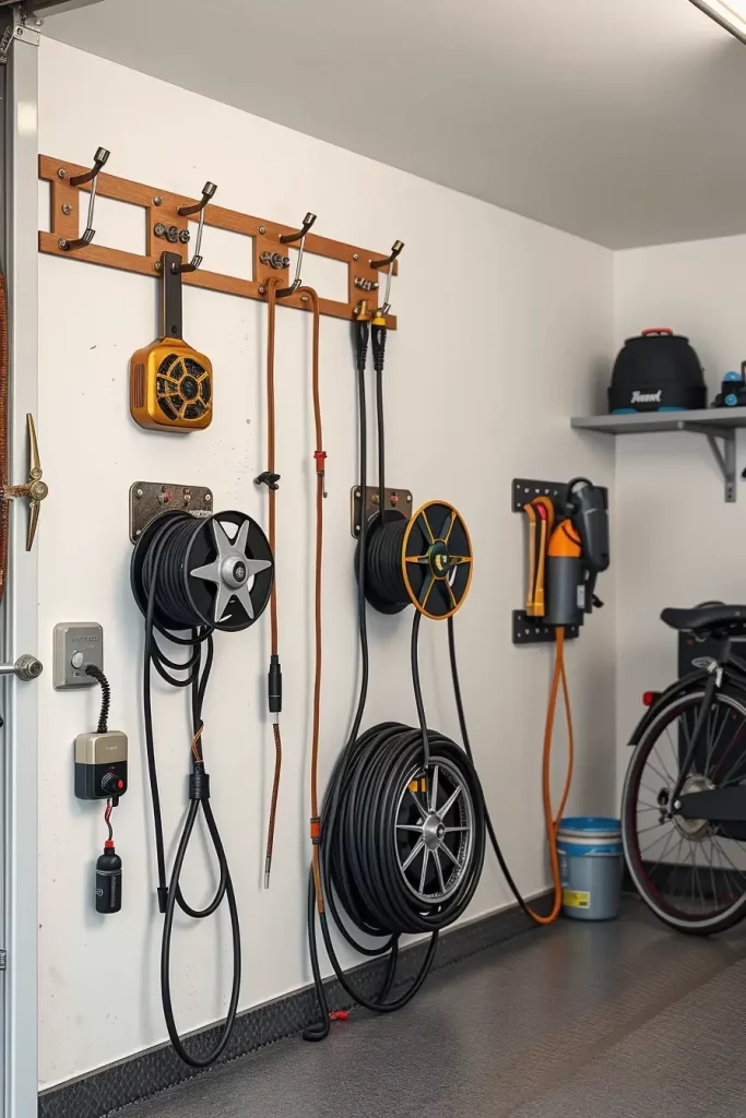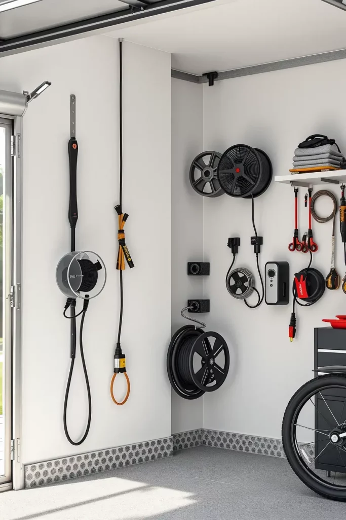 No one likes it when the beauty of a garage is ruined by a tangled mess of extension cords and power cables. In my case, everything from cord reels to cable tracks and even labeled clips come to the rescue in an aesthetically pleasing manner. These products, when placed right, act not only as solutions to a problem, but serve as decorations too.