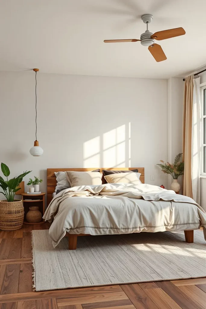What I believe needs to be incorporated here is the incorporation of natural wool blankets or jute rugs to supplement the cotton bedding. These additional layers add warmth, texture and general coziness in a sustainable manner.
