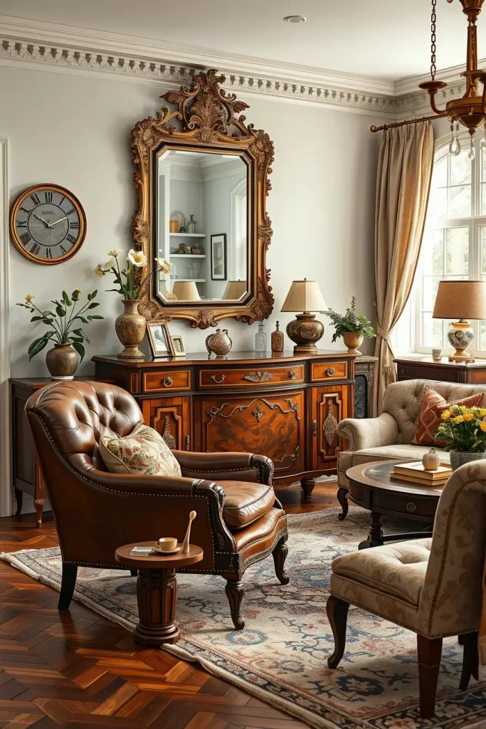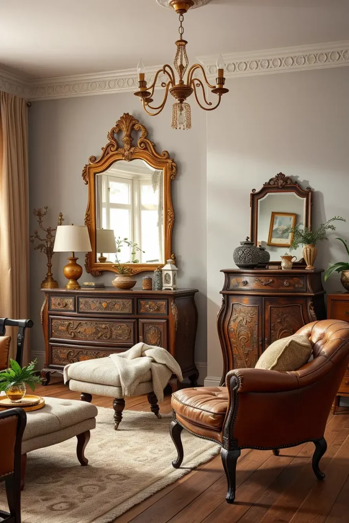 An old mirror in the hallway, an old dresser in the bedroom, or an old leather armchair in the living room can be turned into statement pieces. These products are usually crafted and more durable than most of the contemporary, mass-produced products.