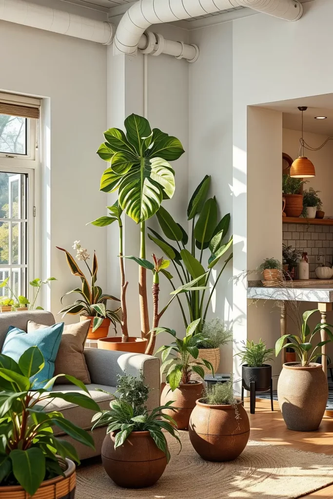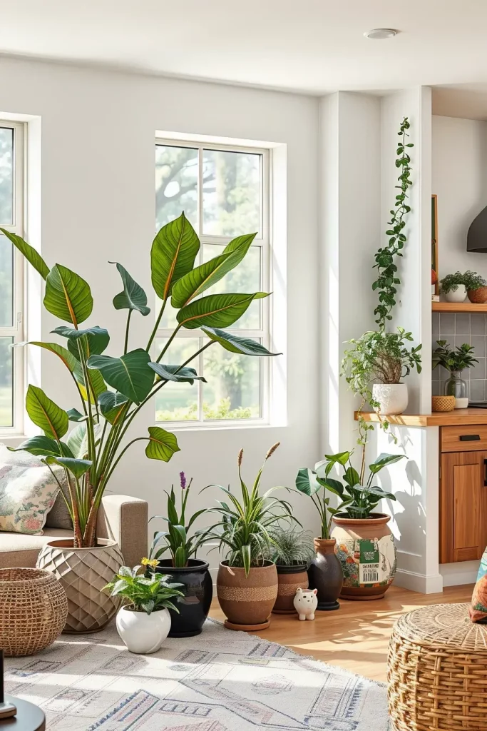 I prefer to have a fiddle-leaf fig in the living room, snake plants in the bedroom, and herbs like rosemary and basil in the kitchen in my house. Not only do each plant add beauty, but they also have a functional use, such as air purification or cooking fresh herbs.