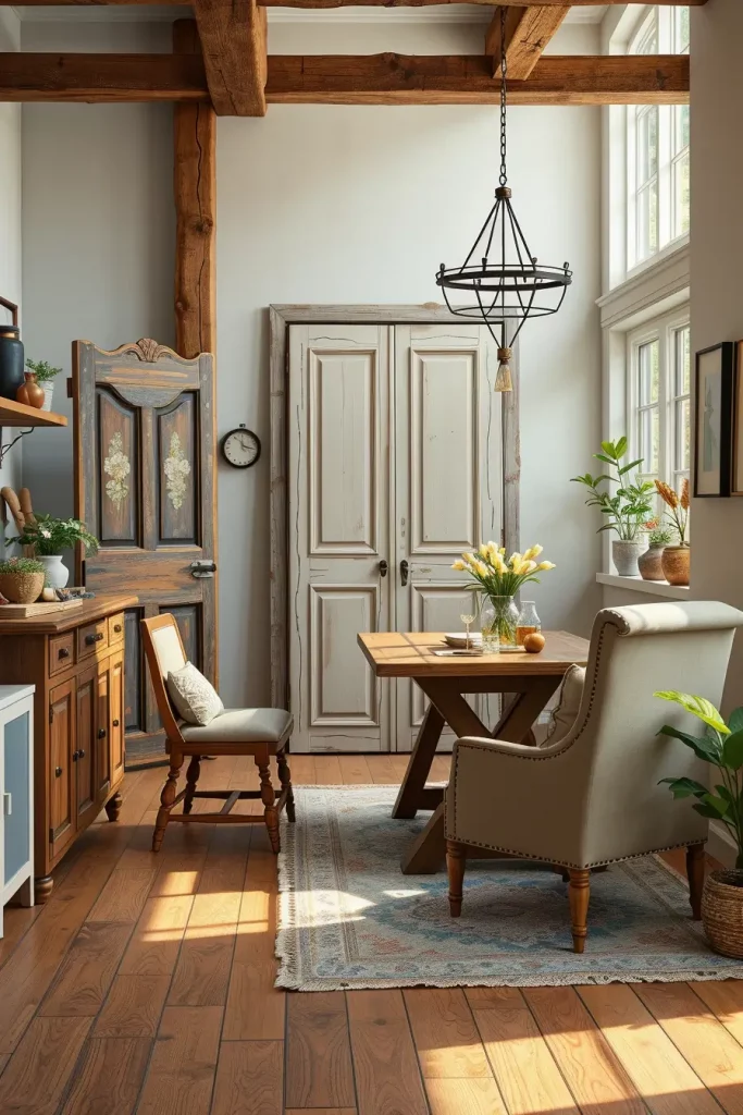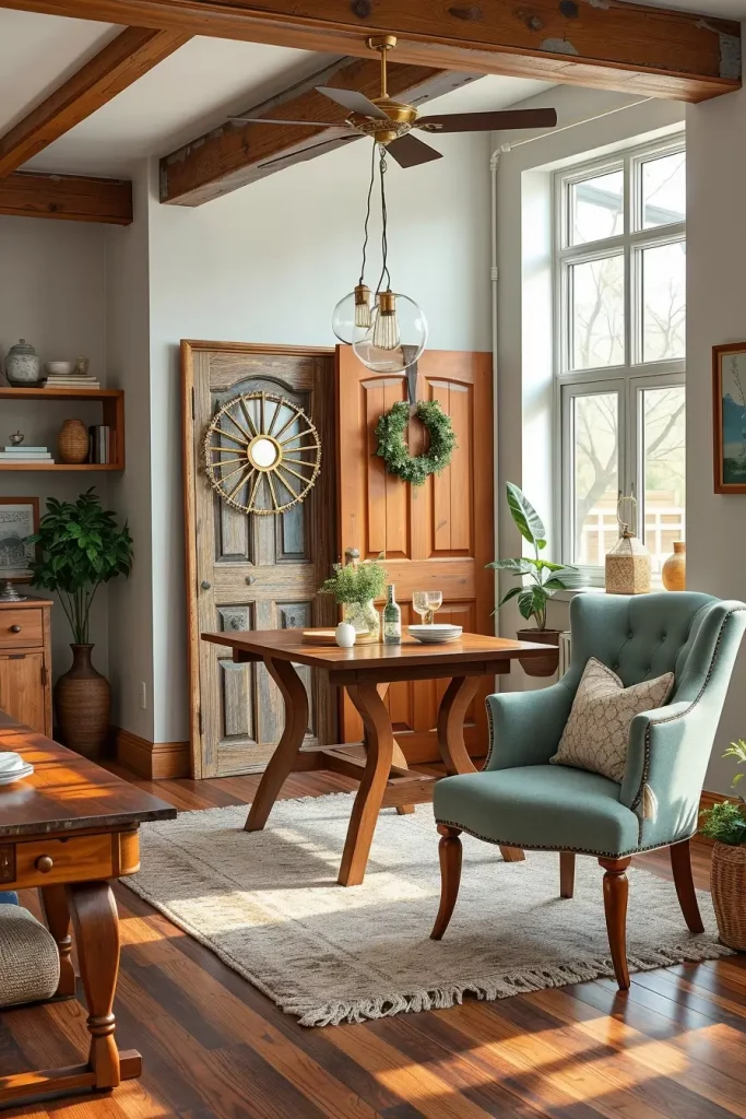 My favorite changes were to convert an old wooden door into a dining table. I used sleek metal legs and sanded it to a rustic modern appearance. Smaller projects, such as repainting side tables with sustainable paint or turning crates into bookshelves, are easy but effective to create a personalized interior.