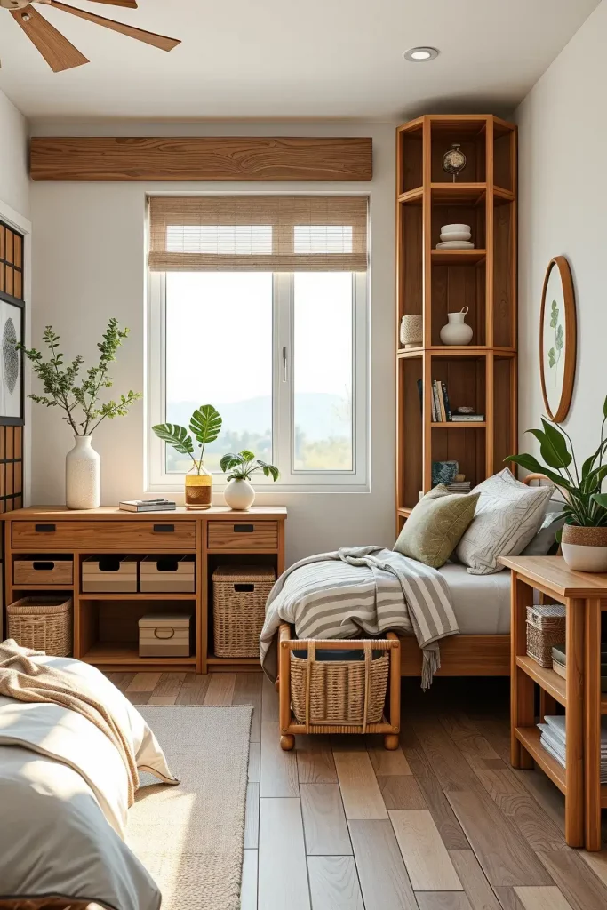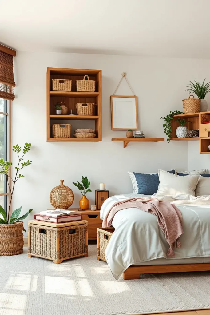 I have used woven baskets and wooden storage boxes instead of plastic bins in my bedroom. These pieces do not only make things organized but also enhance the overall design. Another excellent solution to small spaces is modular shelving systems that are created using environmentally-friendly materials.