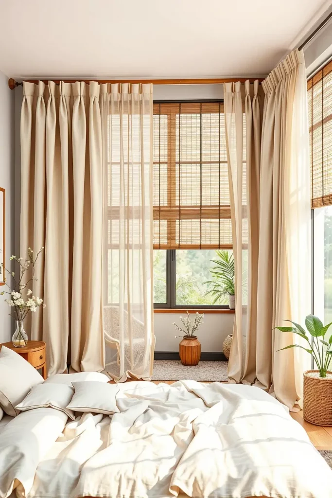 I have linen curtains in my bedroom that are naturally dyed to provide a natural, graceful appearance to the room. Bamboo shades are also a good filter in the living room and save on artificial lighting in the daytime. Such decisions make every room practical and warm.