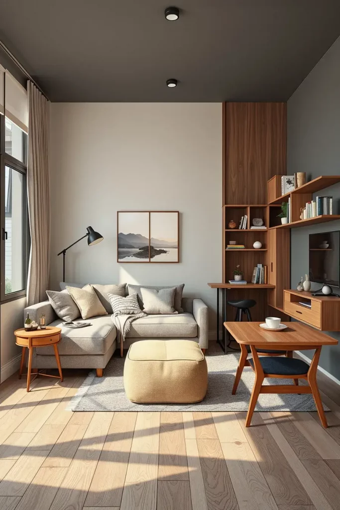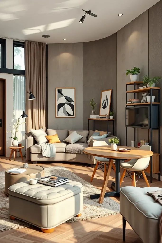 My living room has a sofa bed which also serves as a guest seating area and a sleeping area. I also have an ottoman that has a built-in storage that helps to keep the room clean and less cabinets are required. Other excellent examples of furniture with a combination of style and functionality are foldable dining tables and modular shelving systems.
