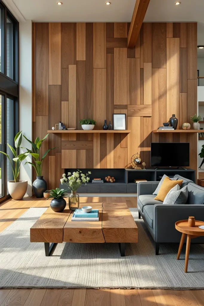 I prefer to use reclaimed wood because it adds a sense of history, coziness, and genuineness to a room. Reclaimed wood is a sustainable living choice whether used as wall panels, coffee tables, or shelving as it uses the available material. It also offers a vintage but contemporary appearance that is eternal in interior design.