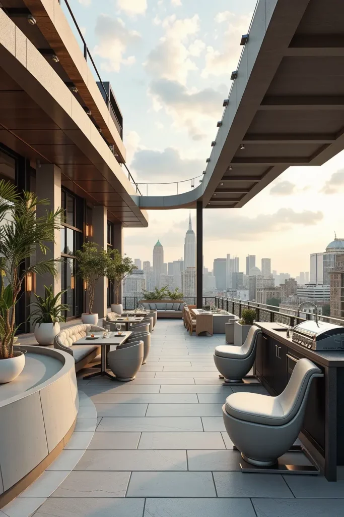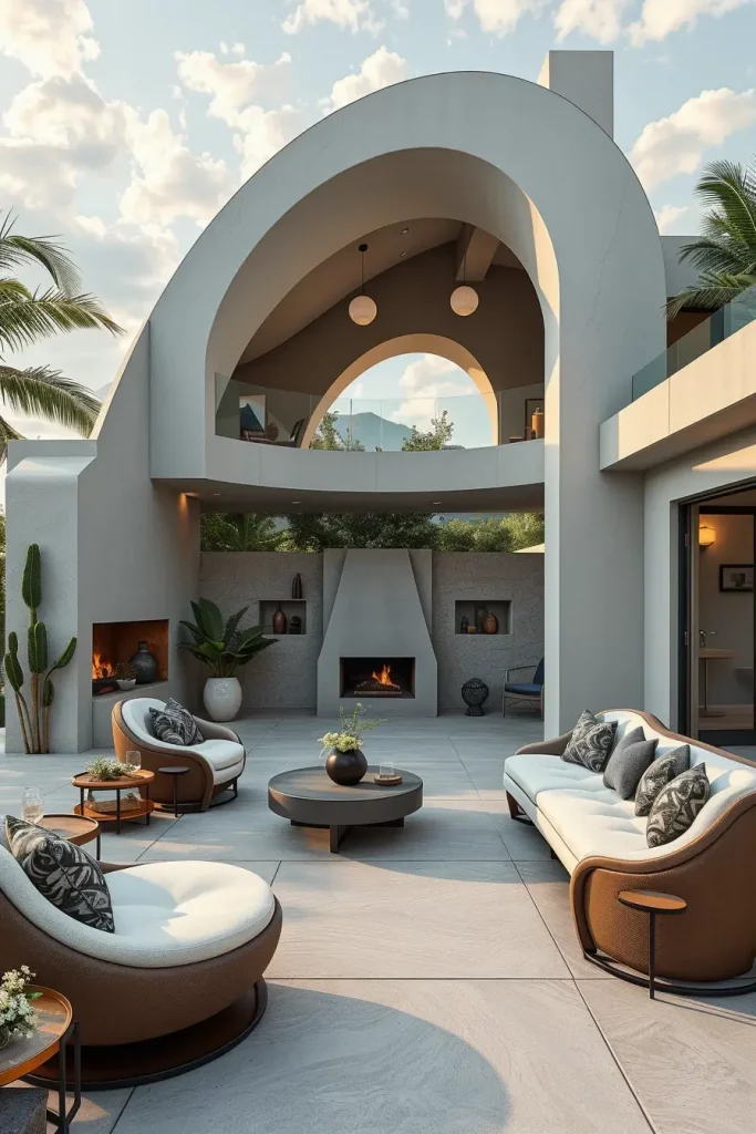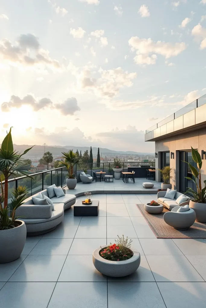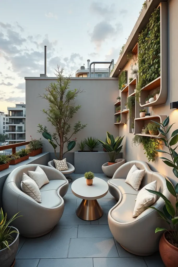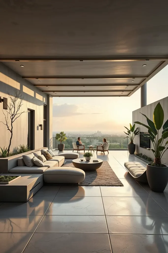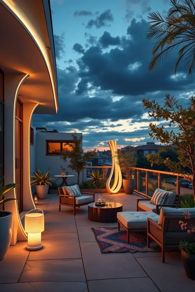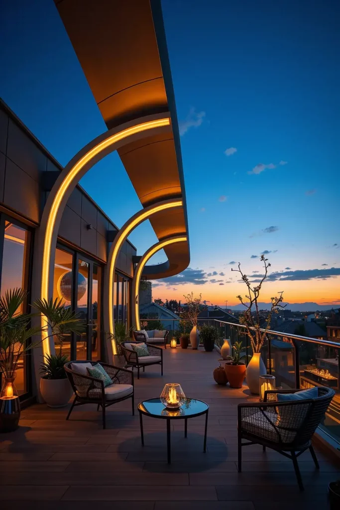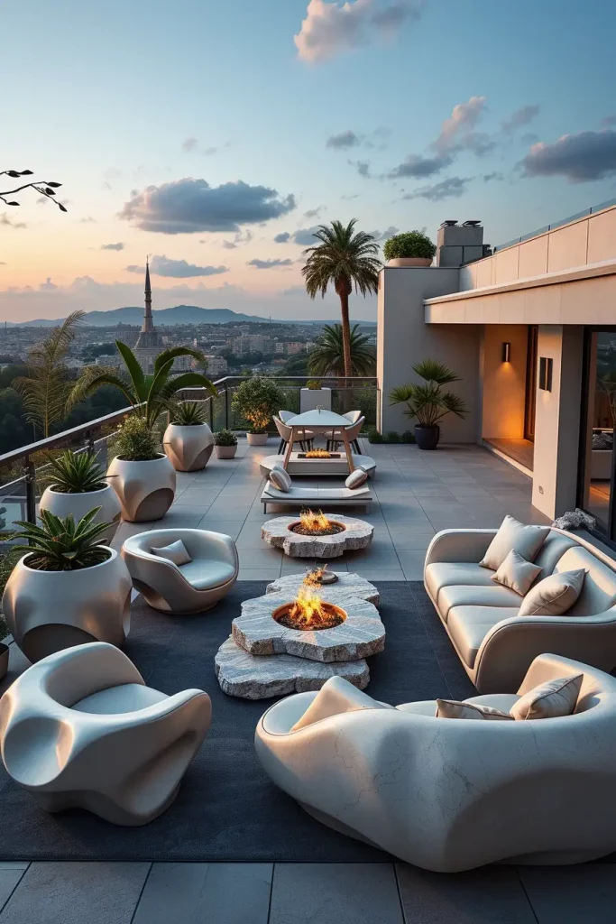 Futuristic terrace designs in 2026 emphasize innovation, comfort, and visual fluidity. I see these terraces as forward-looking spaces that combine advanced materials with human-centered design. Soft curves and smooth surfaces dominate, creating an almost seamless outdoor environment.