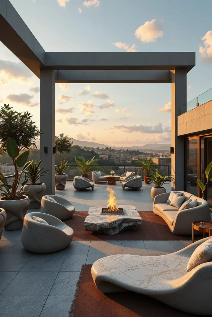 I see sculptural terrace concepts in 2026 as a natural extension of interior architecture into the outdoors. These terraces rely on fluid shapes, layered levels, and intentional negative space to create environments that feel curated rather than simply furnished. From a practical standpoint, sculptural layouts help guide movement, define zones for dining or relaxation, and improve how people interact with the space throughout the day.
