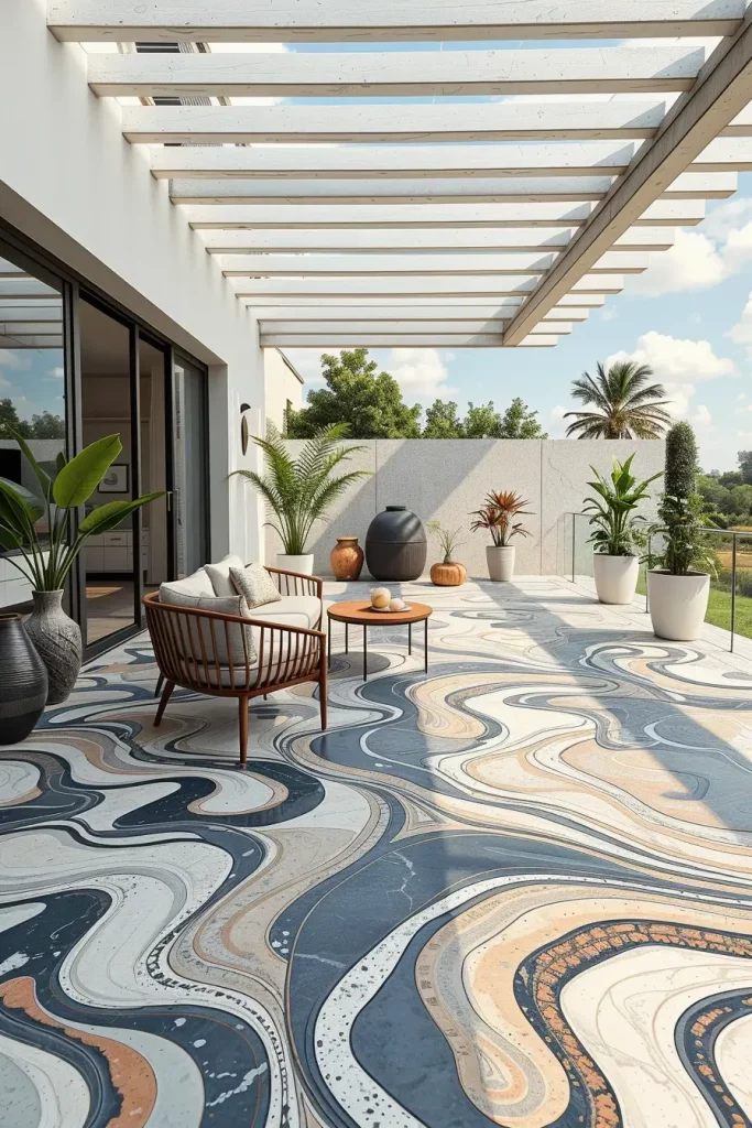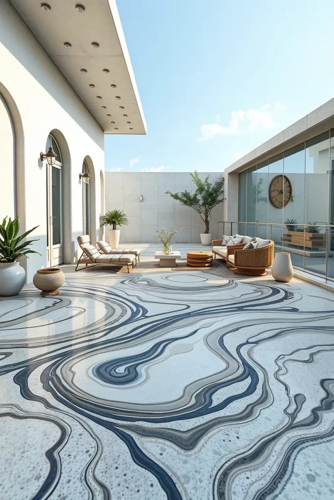 Artistic Terrace Flooring With Flowing And Abstract Patterns