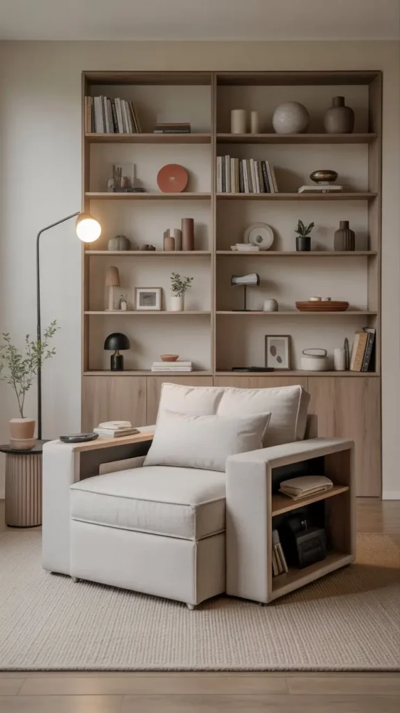 Choosing multifunctional works, I pay attention to such materials as metal, reinforced plastics, or solid wood because they are durable. Another design that I like is one with compartments that are not seen, compressible cushions, or extensions. These chairs are commonly used to match modern or minimalistic styles and they are used well in studios, guest rooms and living spaces that are multipurpose.