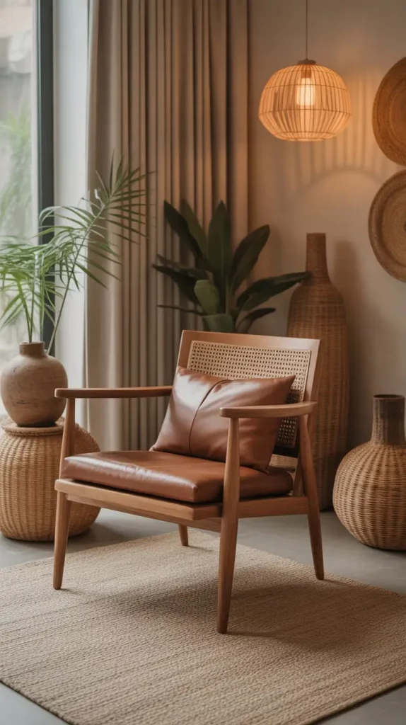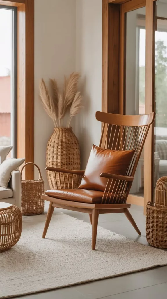 I frequently go with chairs, which have tapered legs, curvy wooden backs or mixtures of materials including leather cushions or metallic embellishments. These aspects make a harmonious appearance that is simultaneously classic and modern. In order to complement wooden appearance, I resort to accessories like woven baskets, soft-textured rugs and natural light.
