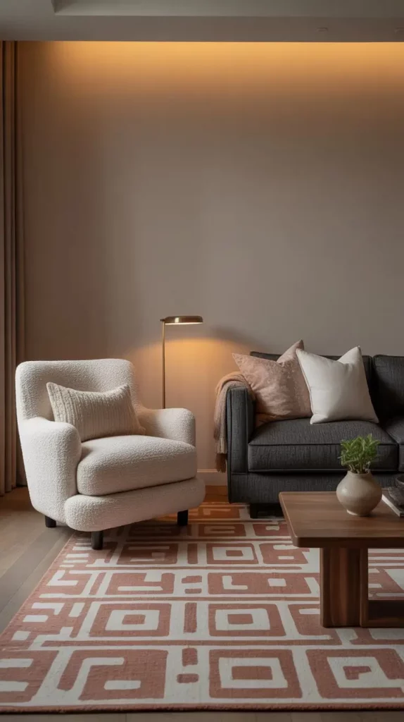 To make these pieces look high-end, I also pair them with items that create a higher effect in their look, which are structured throws, sculpted side tables, matte finished metal lamps, and neutral colored rugs with slight patterns. These supporting components make simple chairs appear infinitely more costly, and they can bring an integrated, edited atmosphere despite working with small budgets.