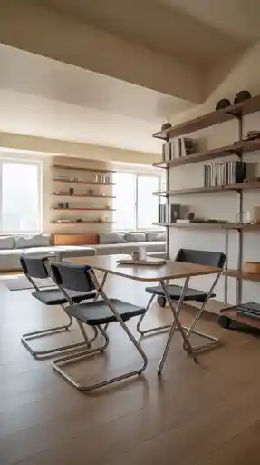 I tend to select items such as wall-mounted fold-out chairs, nesting dining chairs, or collapsible lounge chairs in places where it is important to be flexible. They tend to use high-strength aluminum, lightweight composites, and fabrics that are easy to clean in their materials, and therefore would suit high-traffic areas. These artworks can be easily matched with minimalist or modern furnishing and hence form well with the current designs.