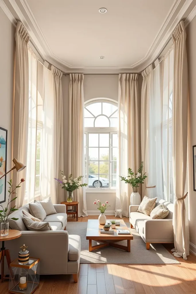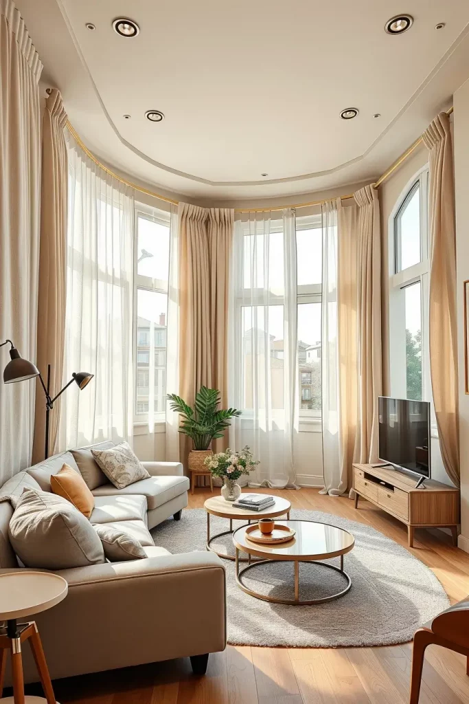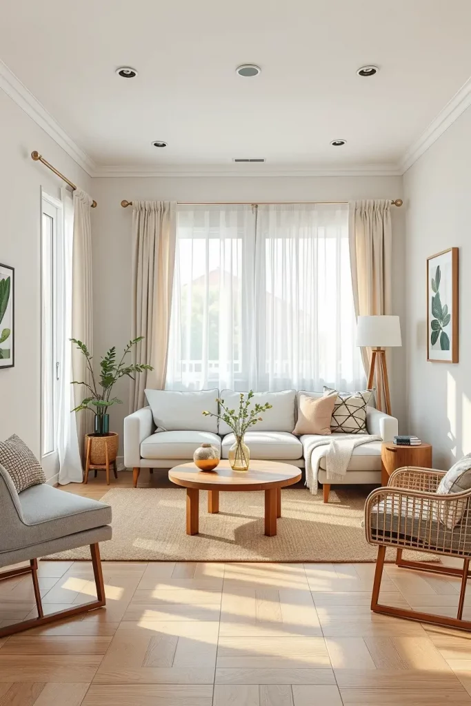 Letting natural light enter is central to good small living room planning. Light shines through sheer curtains and softens its impact so the place appears both brighter and larger with less brightness as a problem.