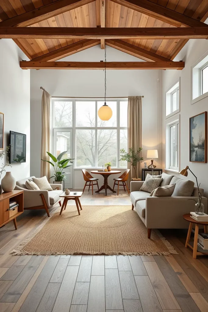 I separated the living-dining area in one project using a large jute rug and a pendant light set above the dining table. Immediately, the two separate areas were created, distinctly marked by furnishings rather than any real walls. Open-plan design uses this strategy as a basic tactic, Better Homes & Gardens explains.