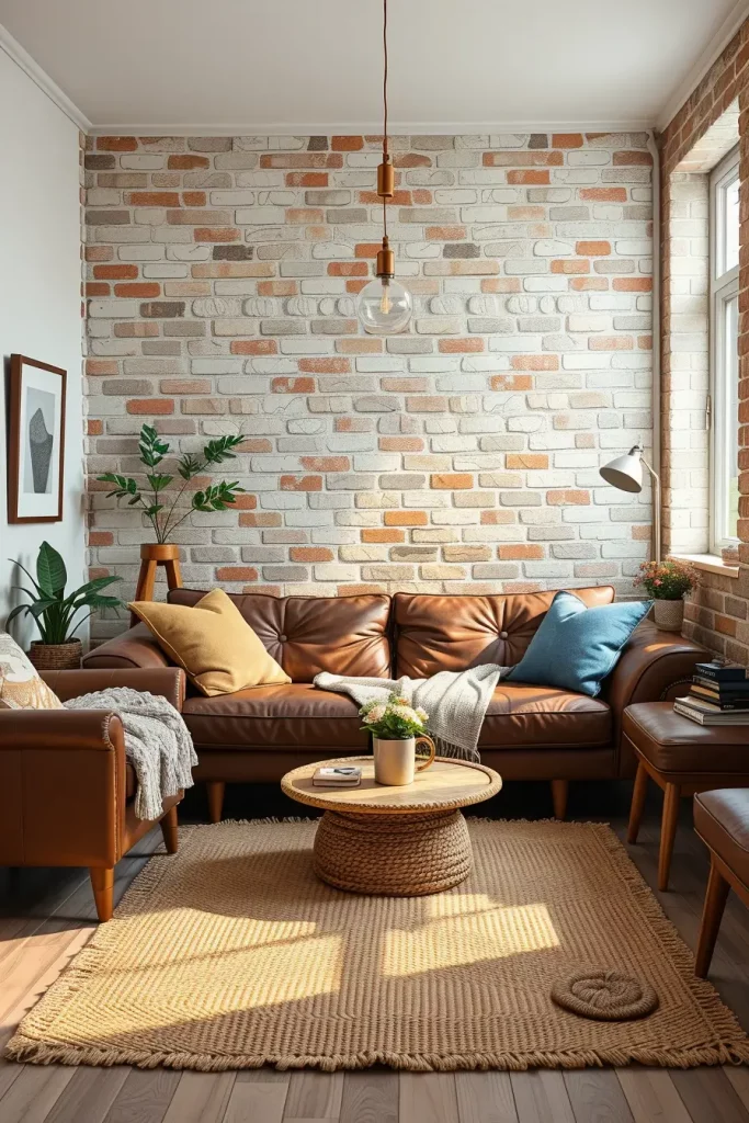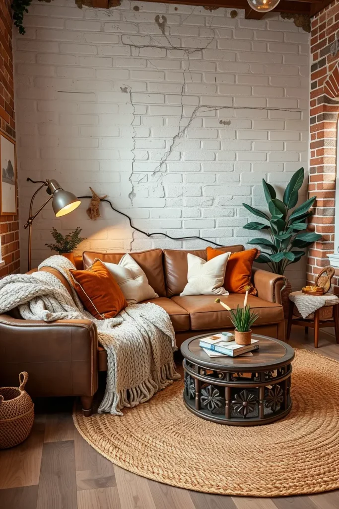I prefer to bring together perfectly smooth leather seats, comfy chunky knit throws, elegant velvet cushions and a woven jute rug. A wall with texture or even a single brick wall can quickly make any room appear more appealing.