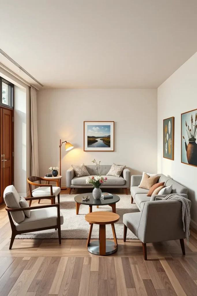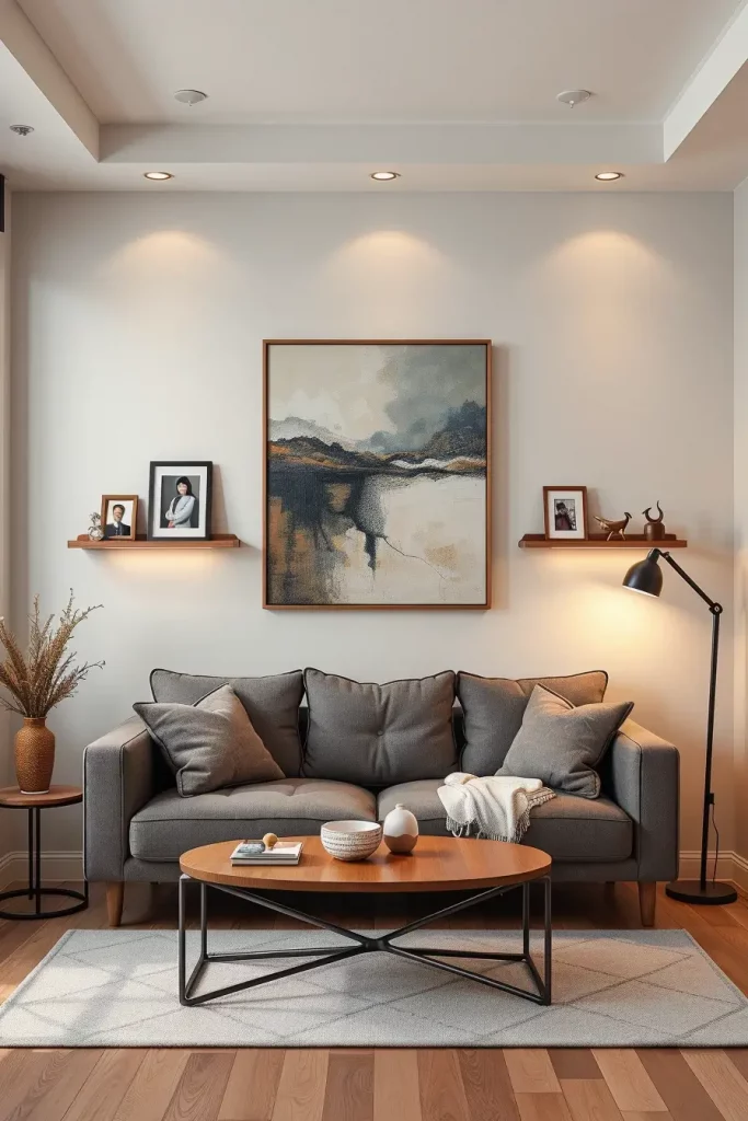 Starting with characterization is the first thing I do when planning a small living room. Art is the quickest and most reliable way to give personality to any space. I prefer pieces that reflect the owner’s experiences, travels, or passions. A small area can be made both attractive and interesting by the right choice of art, without appearing crowded. Whether it’s one large canvas or a gallery wall, the key is balance and meaning.